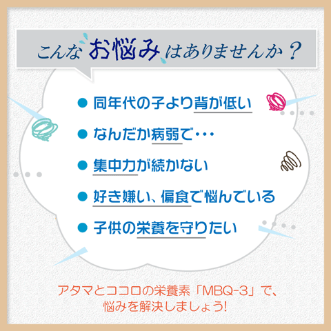 子供の成長栄養素「MBQ-3」を毎日摂取することをオススメします。