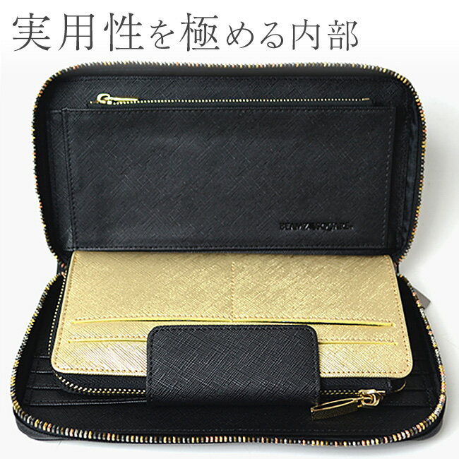 長財布 財布 大型財布 大容量 ラウンドファスナー トラベルウォレット セパレートウォレット パスポート 通帳 スマホ 取り外し ブラック ゴールド BEAMZ SQUARE ビームズスクエア オールインワン■世界的有名スーパーブランドも御用達 高級皮革「グレインレザー」を使用したBEAMZSQUARE特別仕様の大容量セパレートウォレットです。