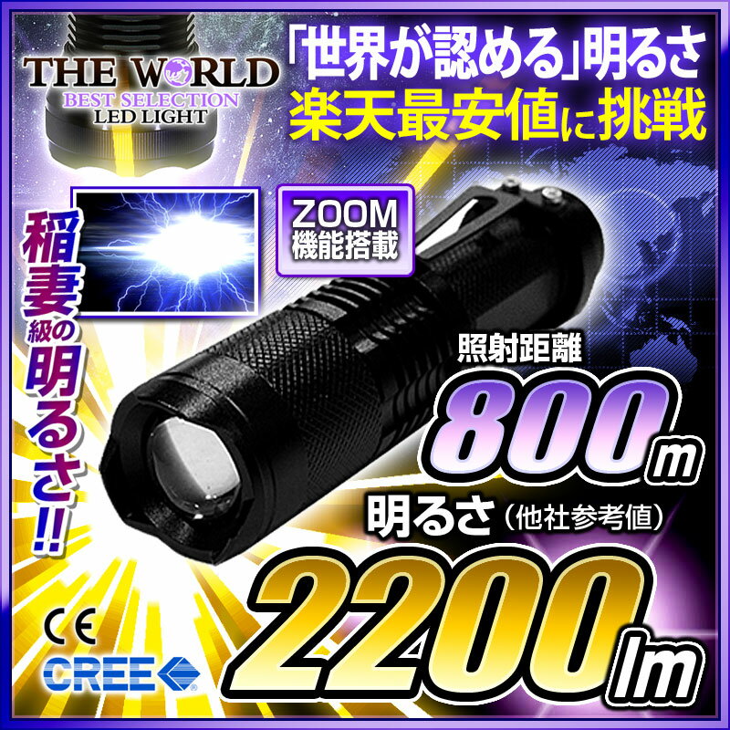懐中電灯 LED懐中電灯 フラッシュライト ハンディライト明るさと実用性を兼ね備えた 本格プロ仕様 【世界選抜】LED懐中電灯 THE WORLD BEST SELECTION LED LIGHT FLASH LIGHT[CREE LED XM-L T6] FL-026 明るさ 2200lm相当(他社参考値) [生活防水・生活防塵/100%正規品/CE取得製品/軍事用、業務用、防災用、ホビー・レジャー用/日本未発売モデル] OUTLINE 日常で、防災で、仕事で、そしてレジャーで。
