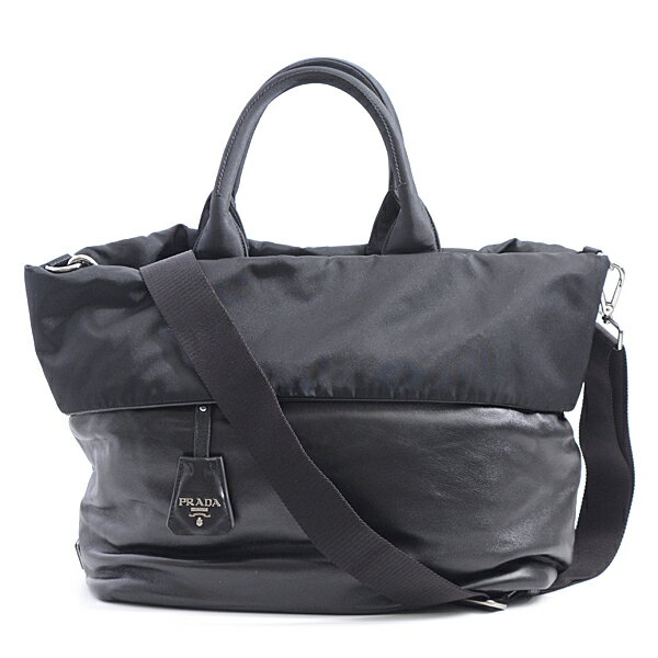 プラダ PRADA リバーシブル トートバッグ 2WAYバッグ ナイロン×カーフ ブラック BN1958【中古】