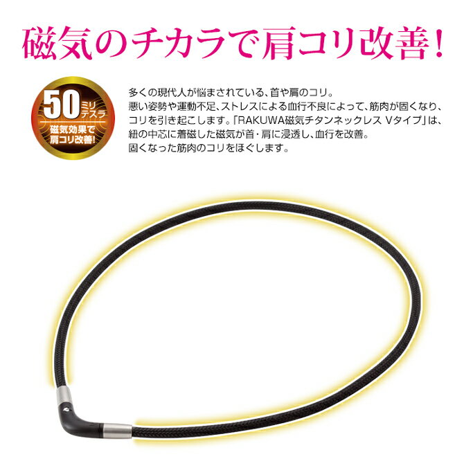 商品情報 メーカー名 ファイテン phiten商品名 RAKUWA磁気チタンネックレス Vタイプ(管理医療機器)商品説明 ■フェイスラインをシャープに見せる血行を改善し、肩コリ、首コリに効く磁気ネックレス。