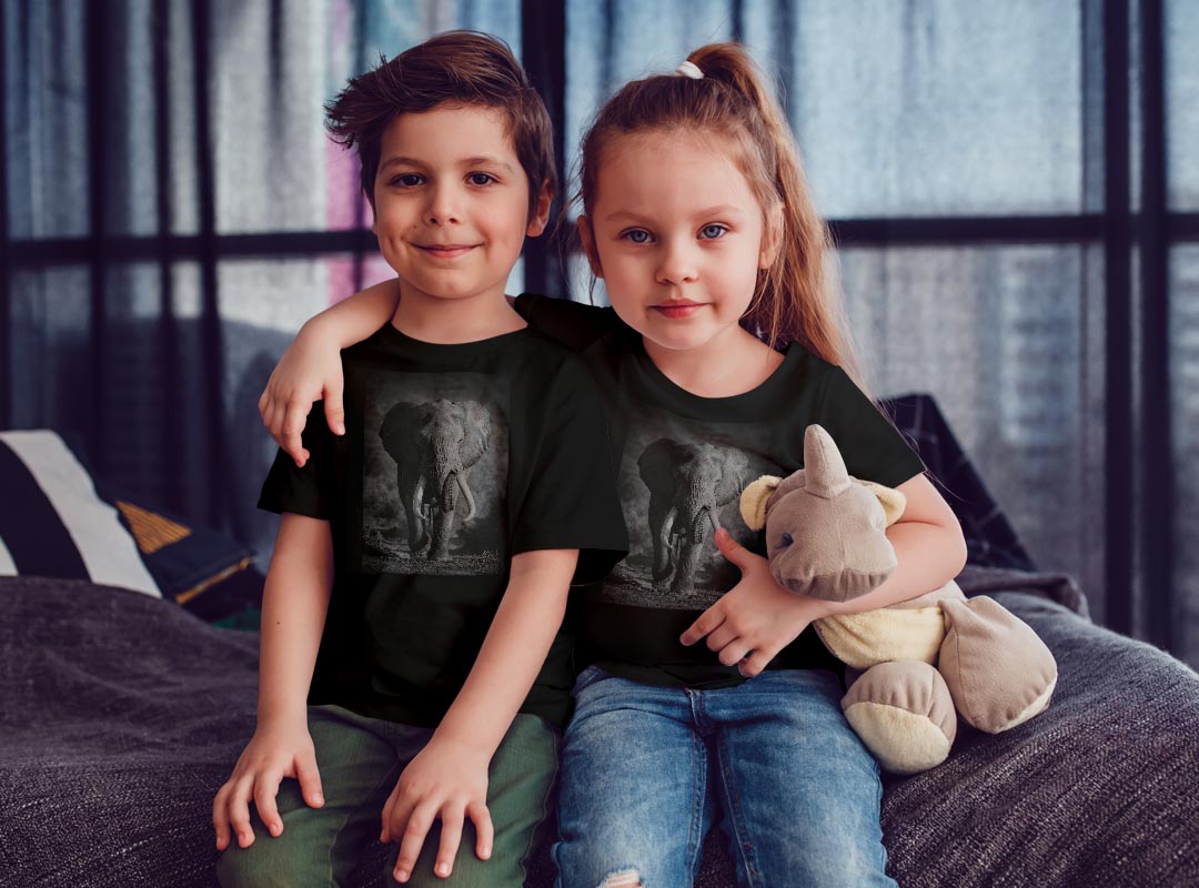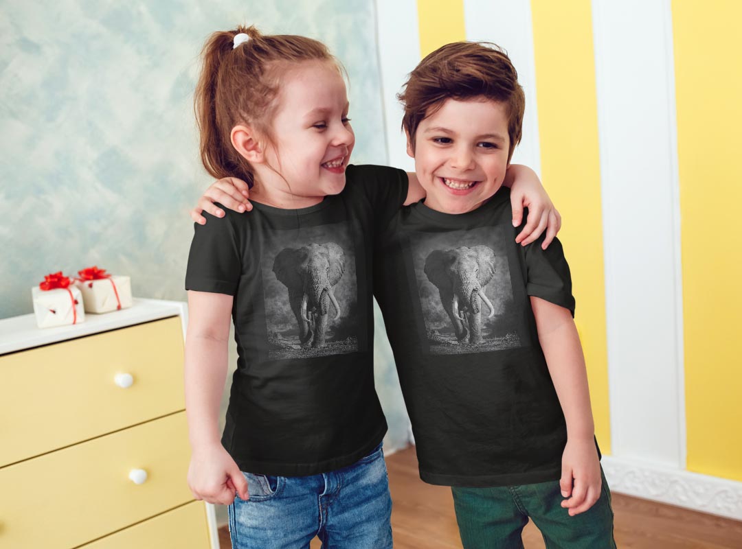 tシャツ キッズ 半袖 黒地 ブラック デザイン 90 100 110 120 130 140 150 Tシャツ ティーシャツ T shirt 001211 ゾウ 動物 モノクロ